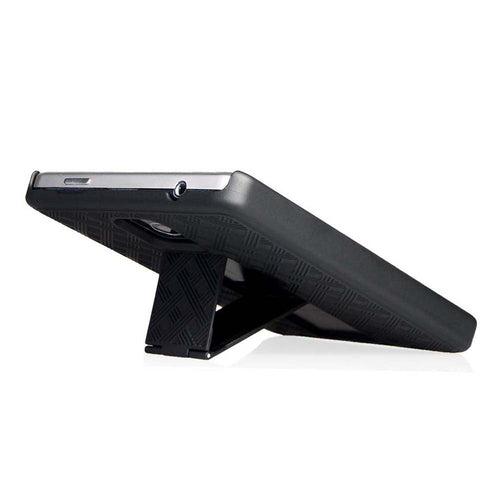 Combining the protection of a shell case and the power of a clip stand holster! The form fit rear shell is impact resistant for complete protection and quickly slides in and out of the holster for instant phone access! The shell case features an exclusive design with a soft matte finish protecting the back and sides of your Blackberry Passport. Edges of casing are extended and reinforced for ample impact protection. The protective shell also features an integrated ! The holster is lined with a soft fabric for a scratch free phone and the 180º swiveling belt clip doubles as an adjustable clip stand. This shell & holster combo not only achieves the ultimate in protection, it also enhances your Blackberry Passport experience!